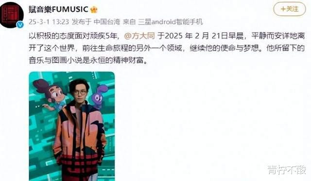 天妒英才啊。大学时候经常听他的歌,后来也没见出新专辑新歌,原来是病了,感觉我身边熟悉的人 都在慢慢消失。